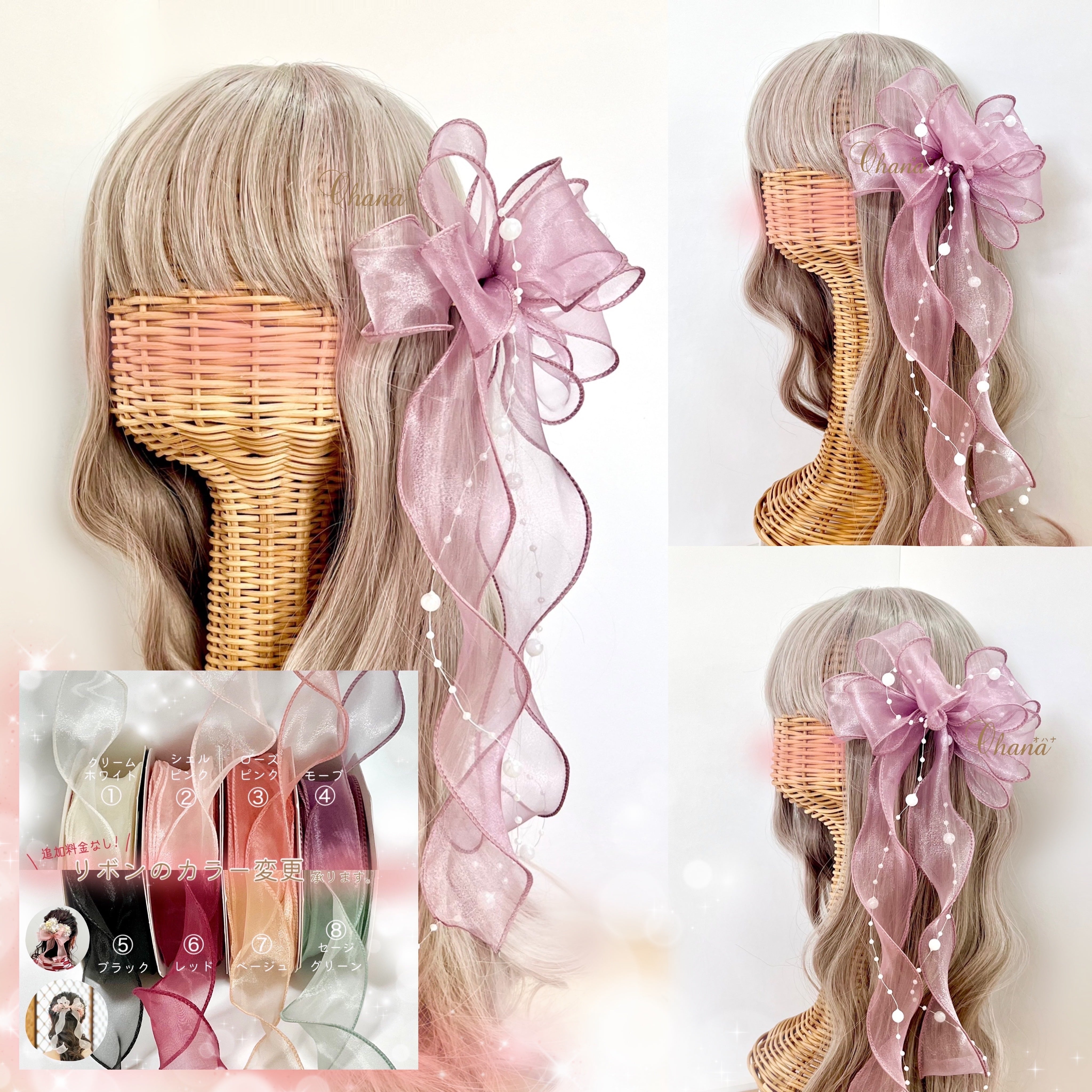 リボンパーツはUピン仕様となりますので、お好きな感じにお付けいただけます。
