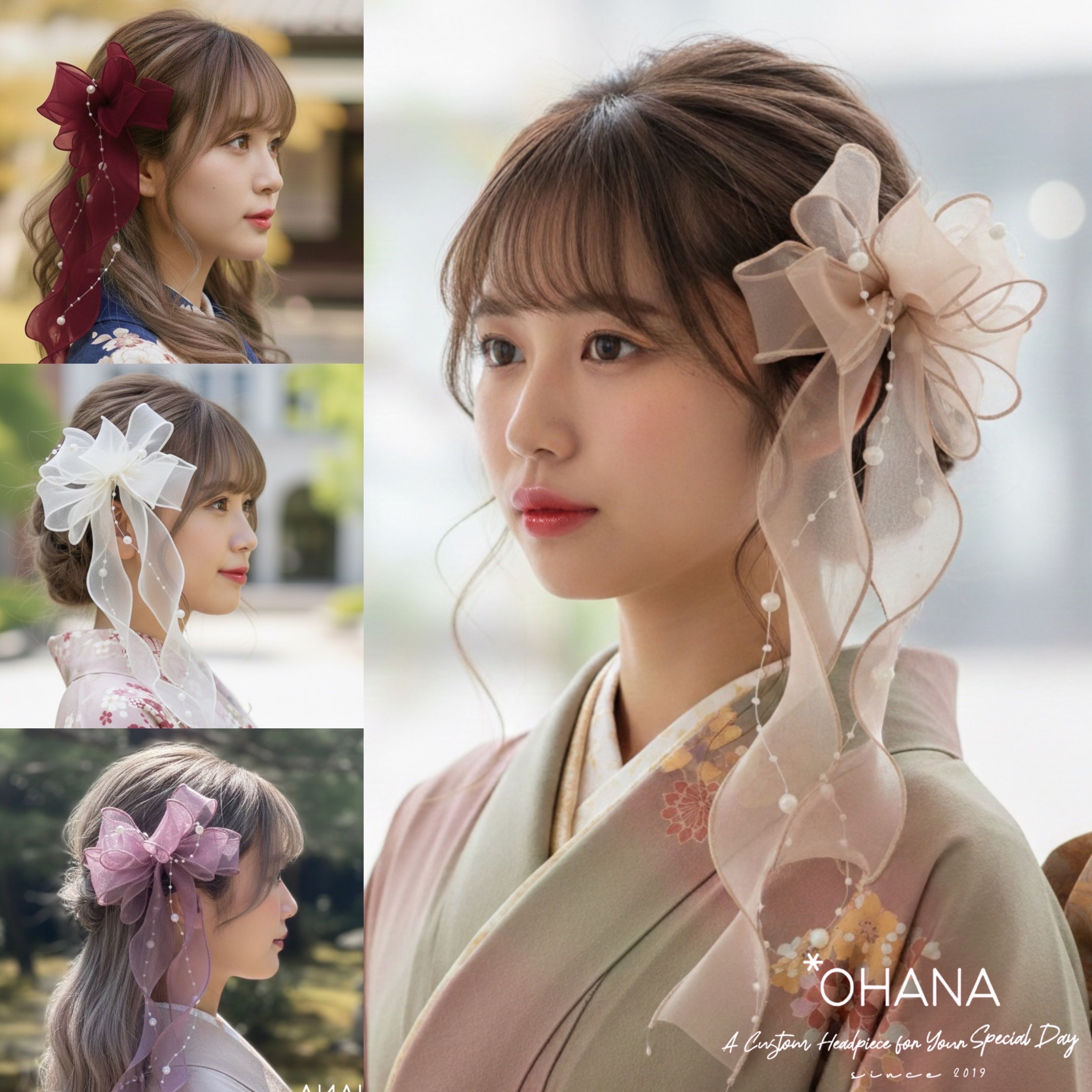 ガーリーなリボン 成人式 結婚式 卒業式 振袖 袴 和装 髪飾り 七五三 753 浴衣 ドレスヘア OHANA