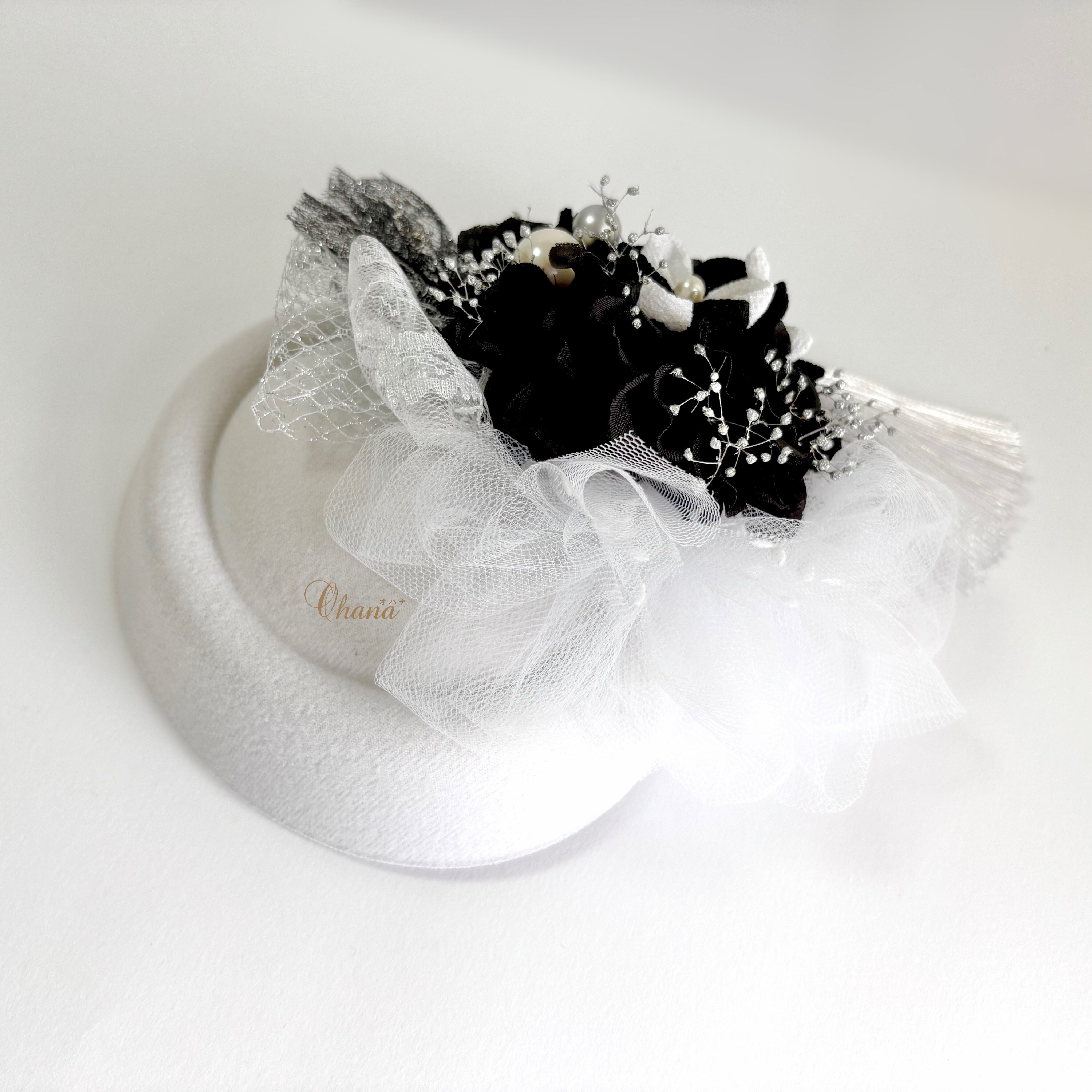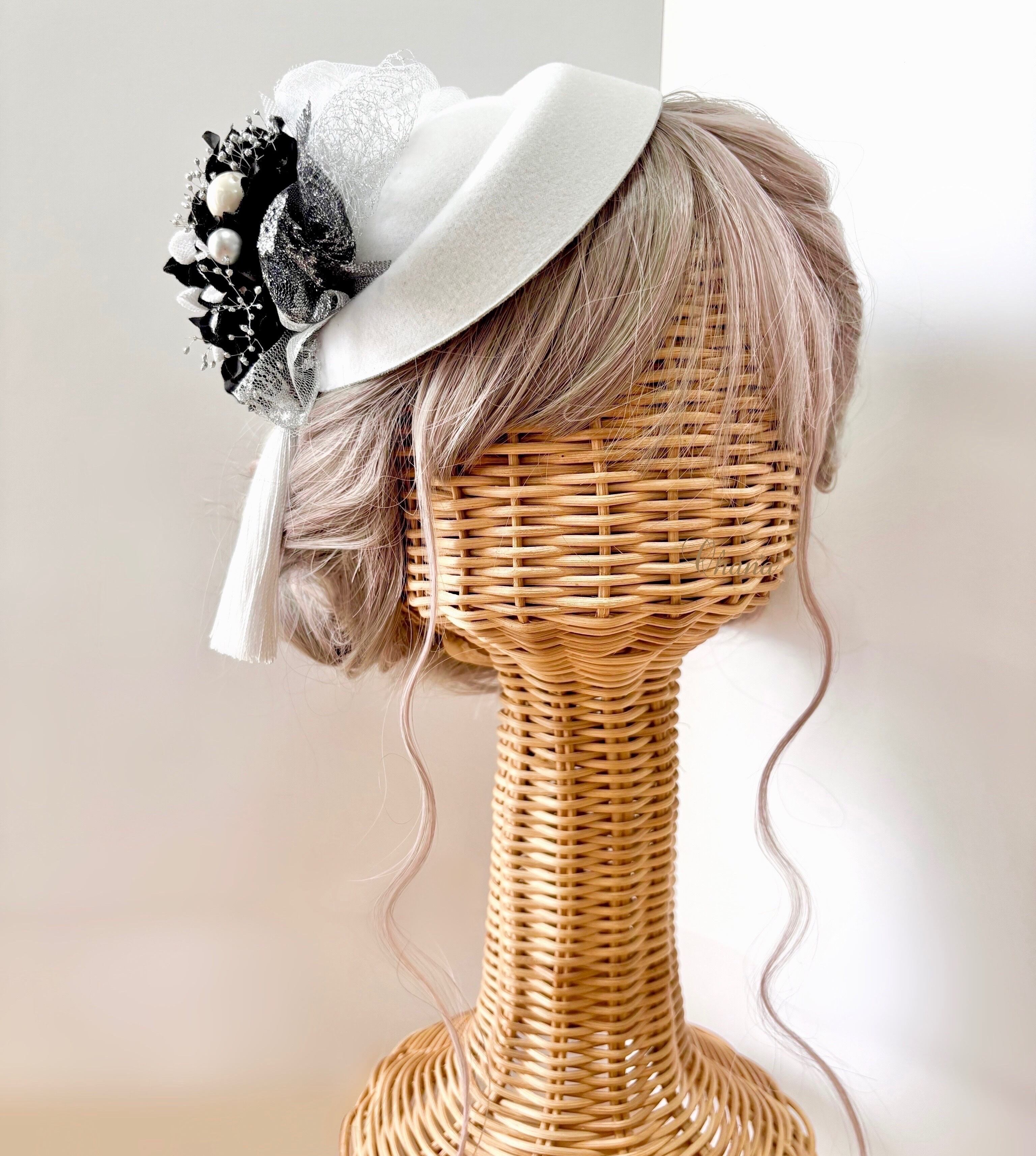 作家さんがつまみ細工の技法で仕上げられたトーク帽です。
