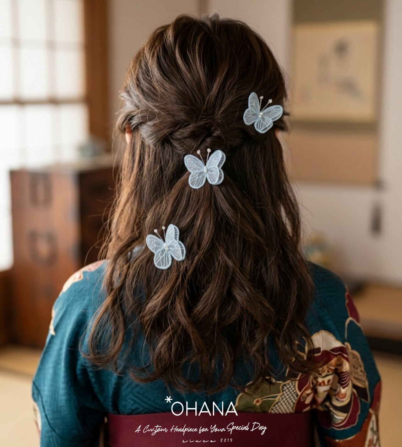 【カラーオーダー】立体二重蝶々の髪飾り(*3匹) / スカイ・ピンク・藤 / 成人式・推し活・結婚式 / 淡色 OHANA