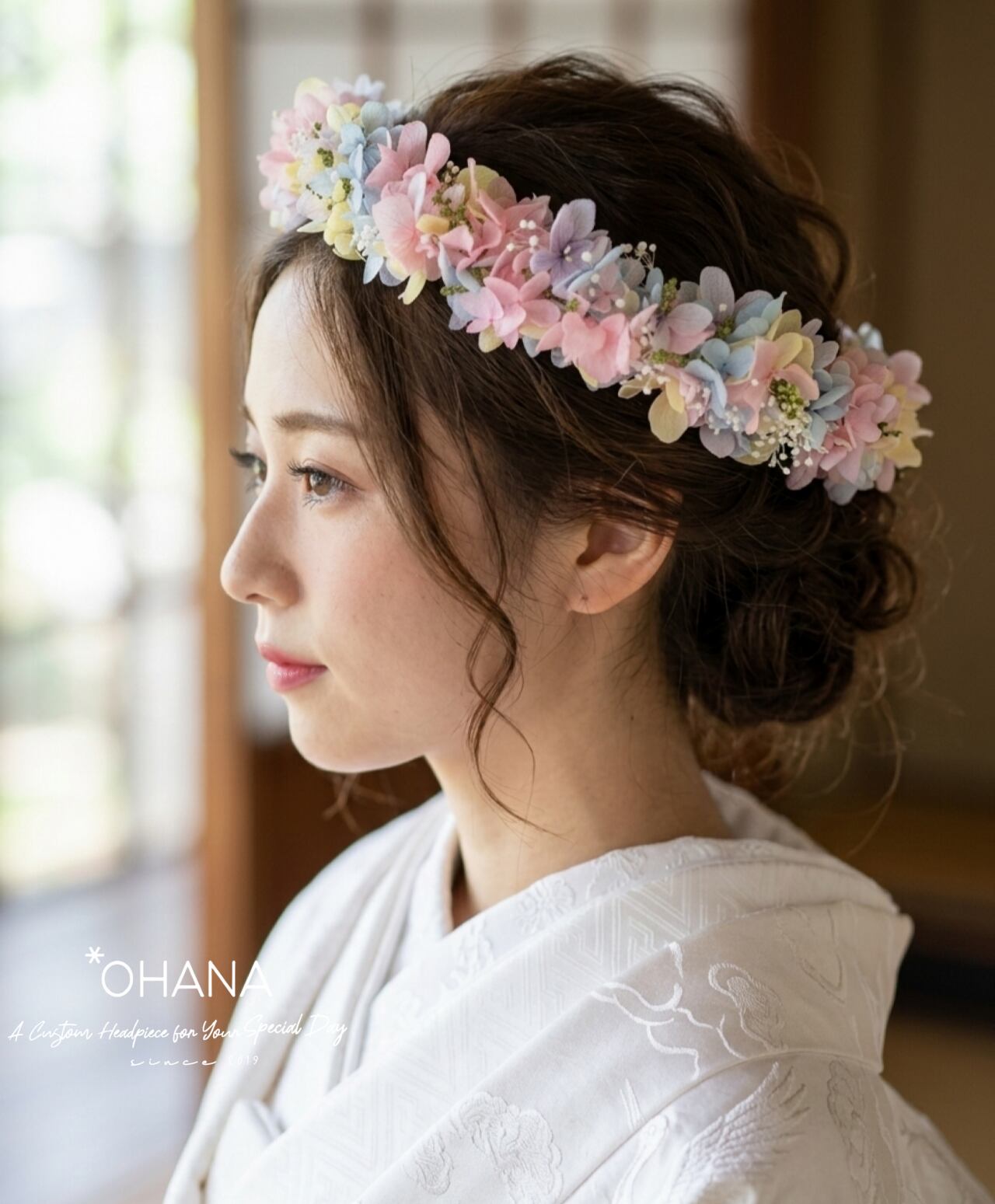 夢色パステル 紫陽花 花冠 結婚式 前撮り ウェディング 卒業式 袴 成人式 ヘッドドレス カチューシャ OHANA