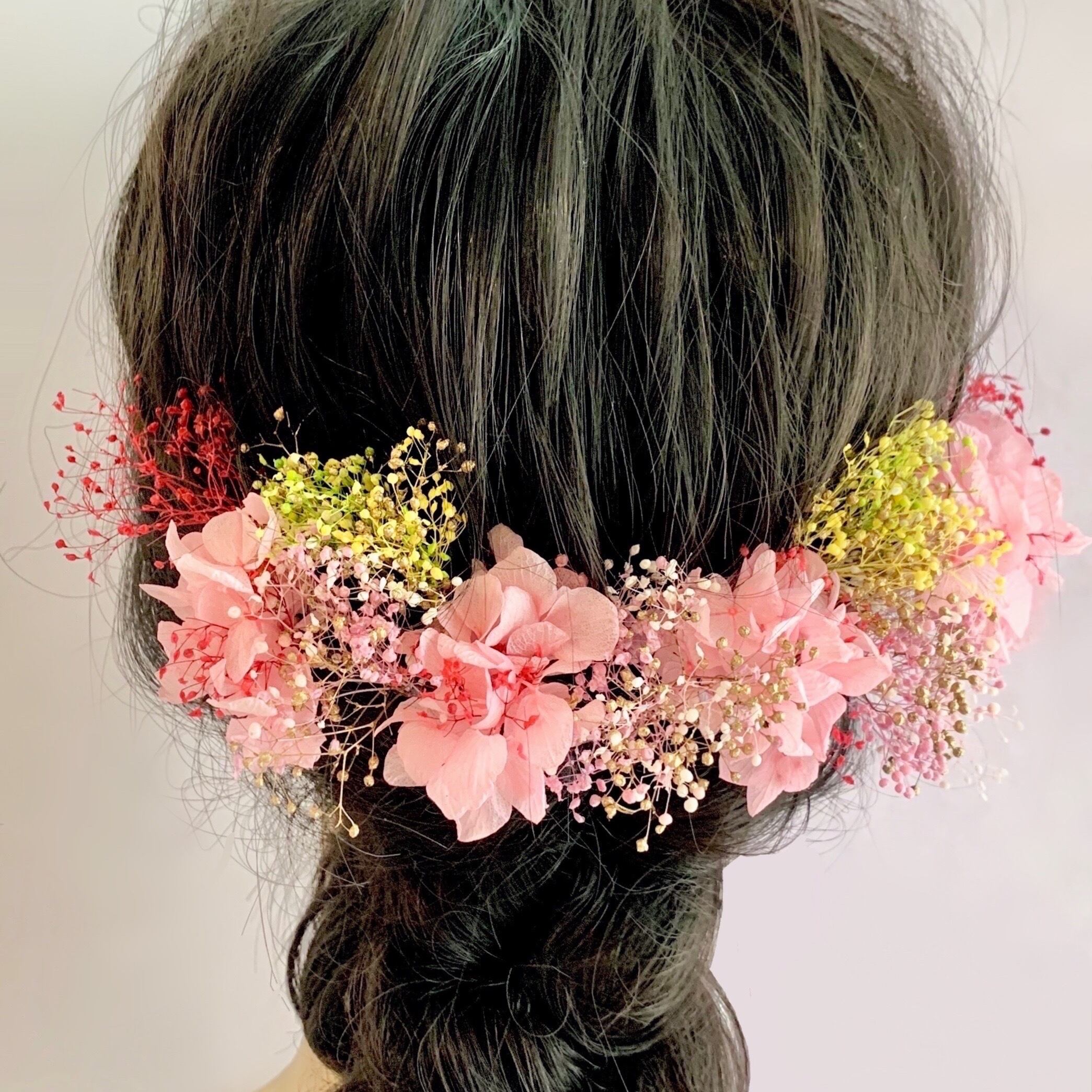 ・ プリザーブドフラワーの素材で今っぽいゆるふわヘアに最適です。