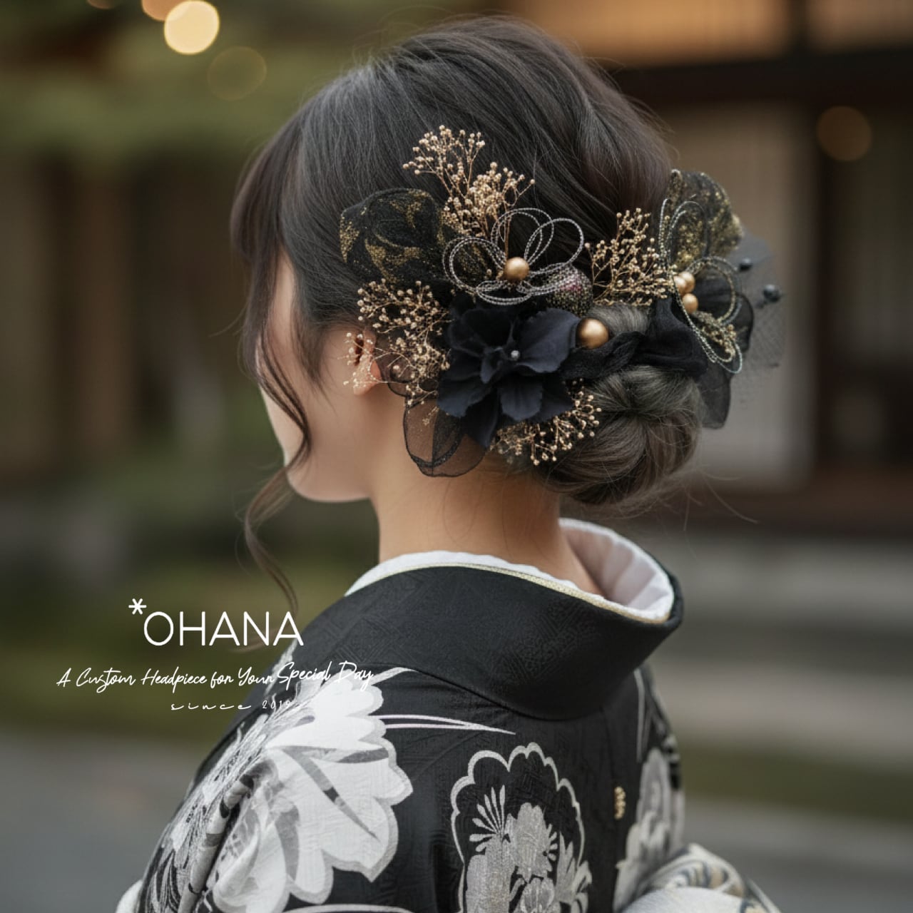 #成人式髪飾り #卒業式髪飾り #振袖髪飾り #袴髪飾り #水引髪飾り #髪飾り #ヘッドドレス #和装髪飾り #前撮り #結婚式髪飾り #色打掛 #ブラックゴールド #黒ゴールド #チュール髪飾り #かすみ草 #和玉 #金箔ヘア #ドライフラワー髪飾り #ハンドメイドアクセサリー #ヘアアクセサリー #二十歳 #謝恩会 #和装ヘア #モダン和装 #着物ヘア #OHANA髪飾り #Ohanaヘア飾り