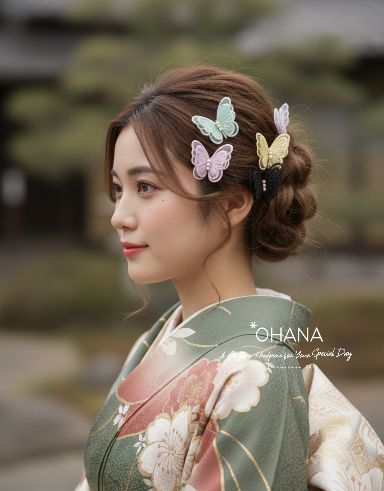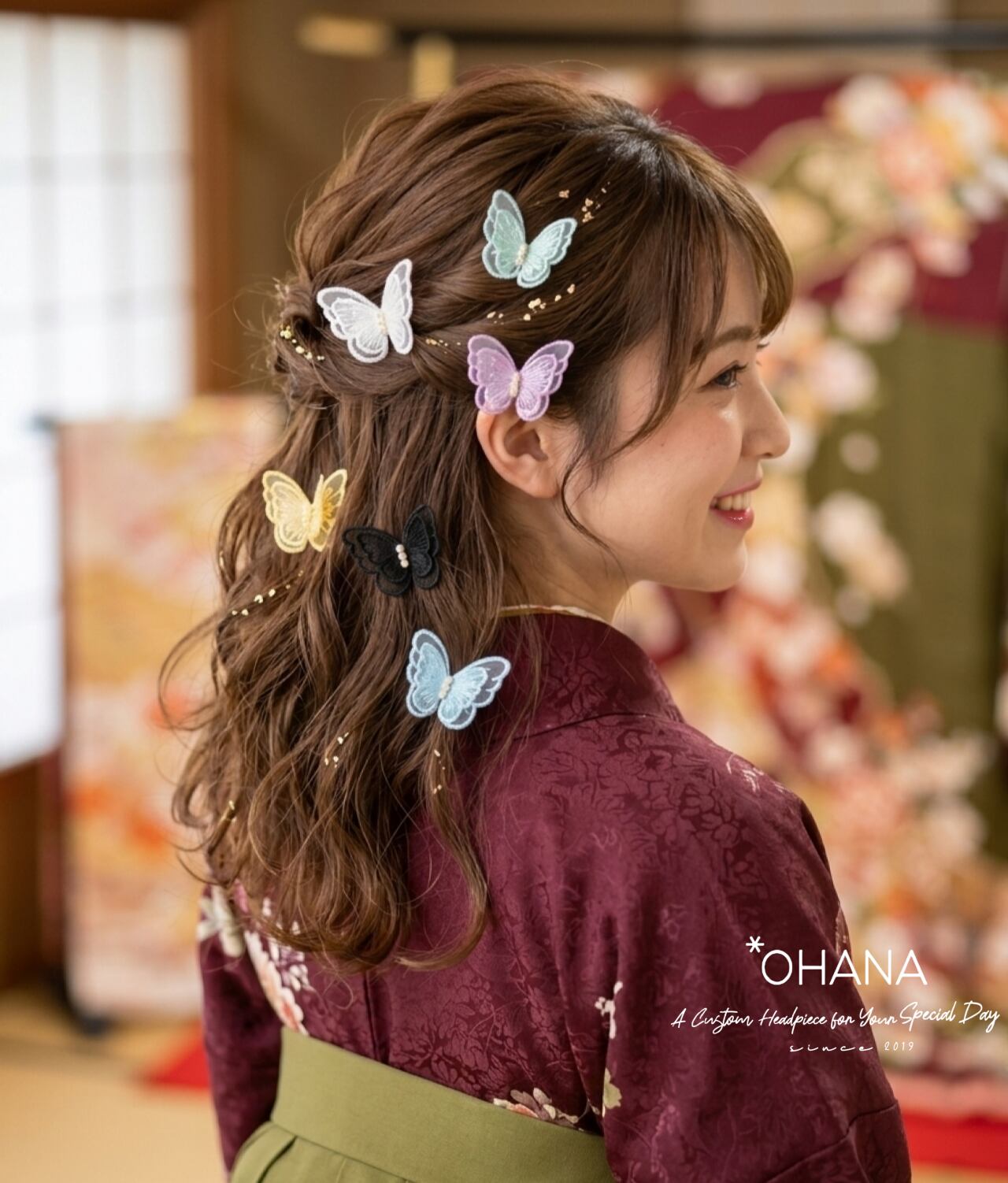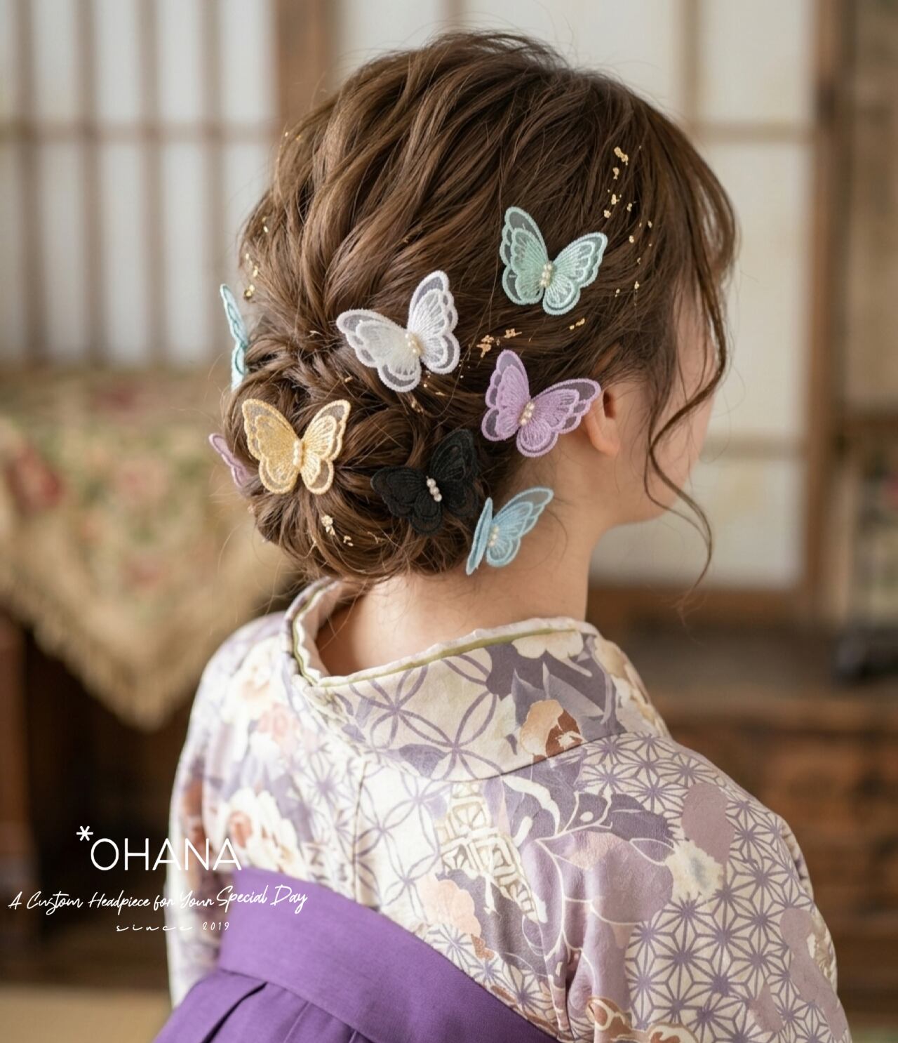バタフライ 蝶々の髪飾り 蝶々飾り 蝶々 ダブル蝶々 二重蝶々 ヘアアクセサリー ヘアアクセ 髪飾り 成人式 結婚式 卒業式 七五三 ウェディングヘア ウェディングドレス ブライダルヘア 婚礼 結婚準備 披露宴 挙式 フォトウェディング 前撮り 色直し 二次会 2次会 花嫁 ドレスヘア 和装 白無垢 ローケーション 振袖 袴 お呼ばれ パーティ OHANA idee_shie OHANAbyidee