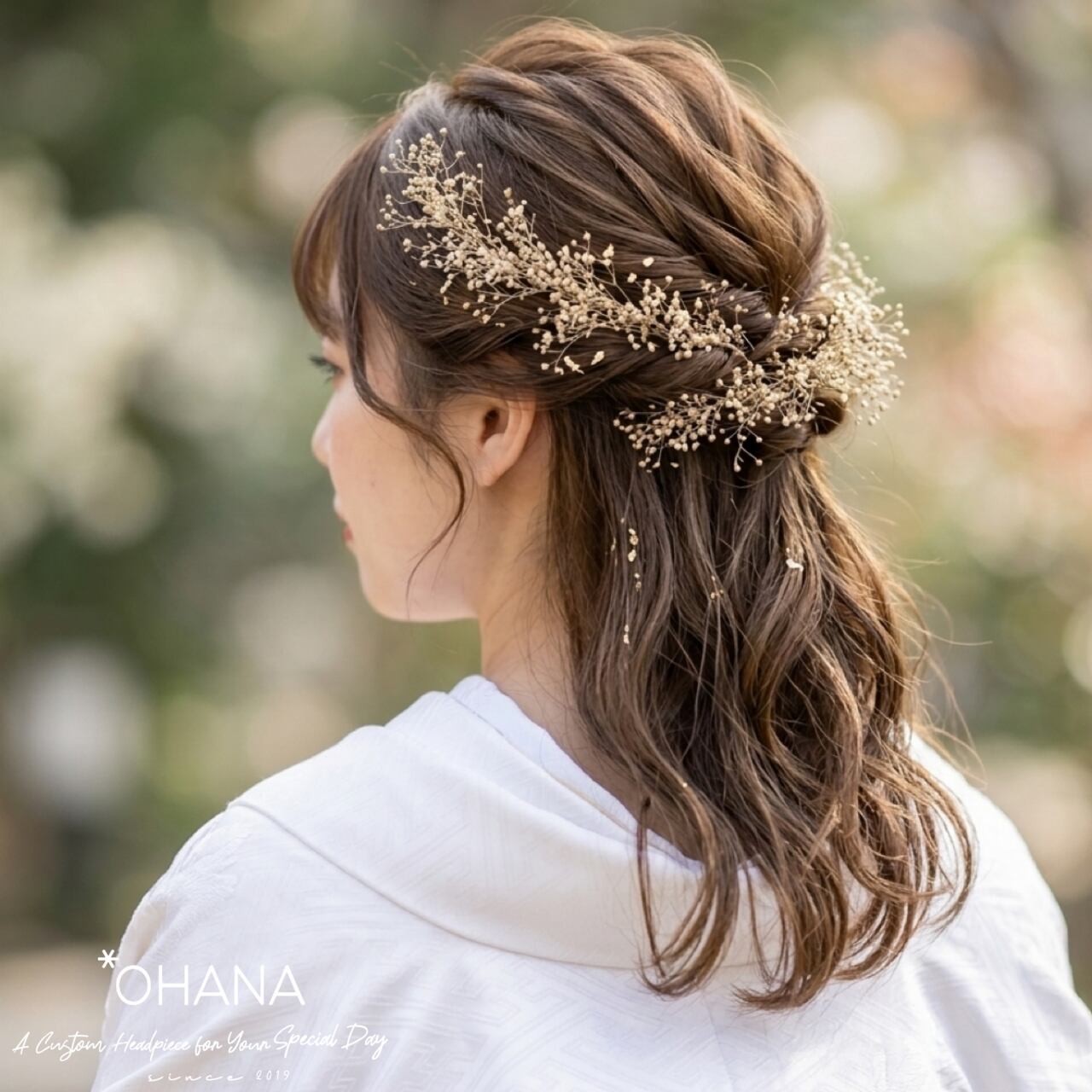 花冠 花かんむり 結婚式 ウェディングヘア ドレスヘア 成人式 振袖 袴 髪飾り ヘッドドレス かすみ草花冠 OHANA