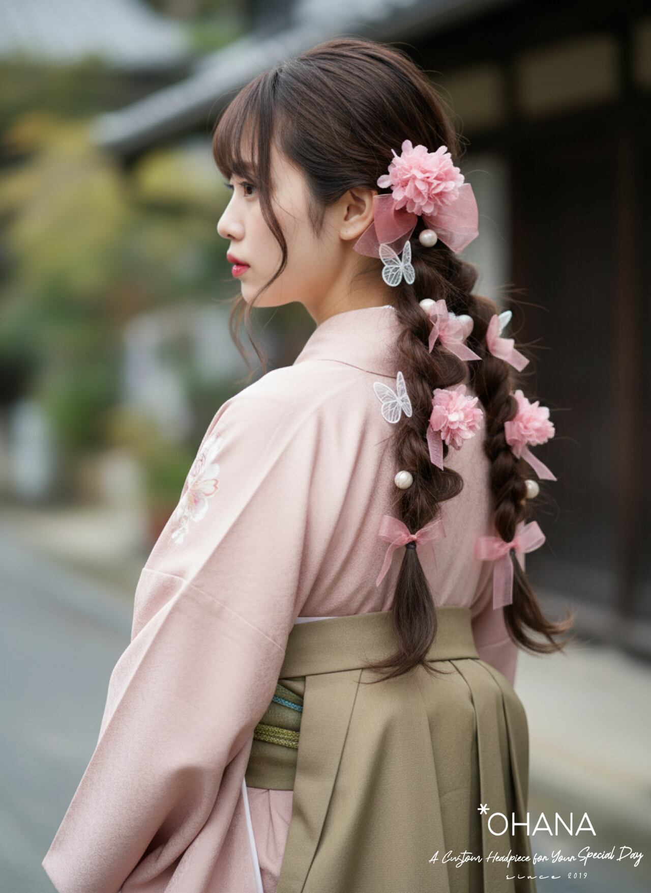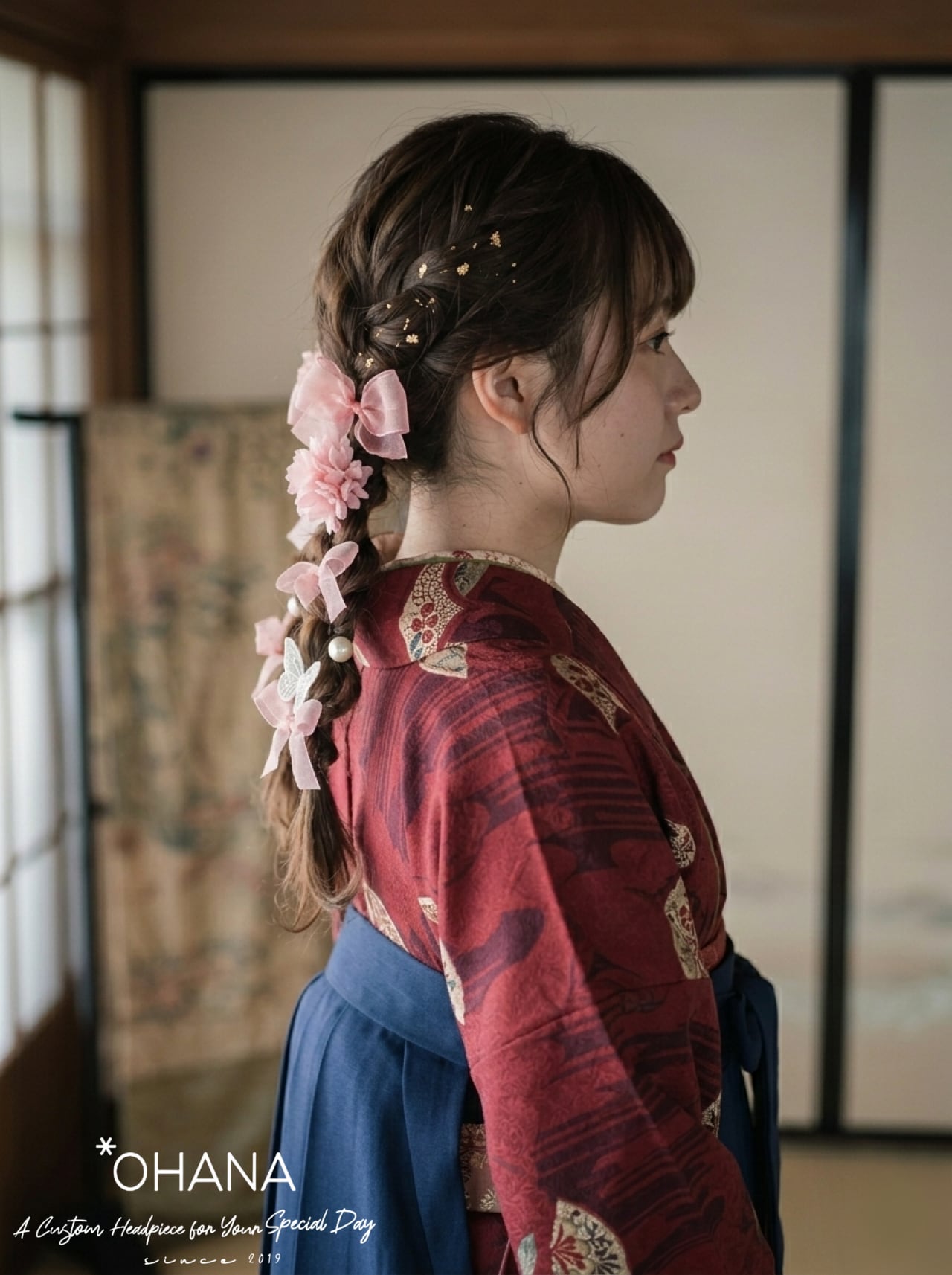 成人式 卒業式 結婚式 ウェディング リボンアレンジ ヘッドドレス 髪飾り 和装 袴 振袖 ツインテール OHANA