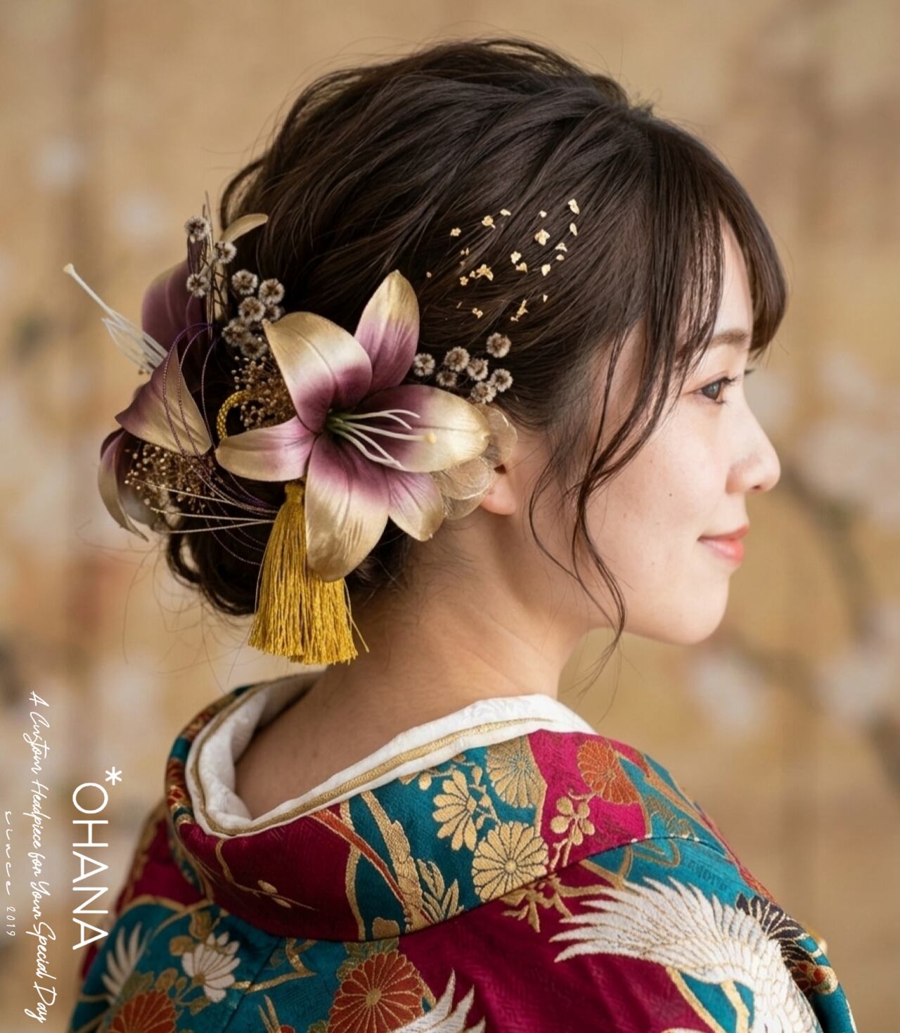 百合 ユリ リリー 成人式 卒業式 結婚式 七五三 髪飾り 和装 袴 振袖 水引 タッセル かすみ草 OHANA